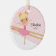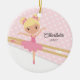 Personalise Dated Cute little blonde ballerina Christmas Ornament set on a barre with pink dot background. A Wonder Christmas gift sure to be treasured for many years to come.