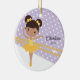 Personalise Dated Cute african american ballerina Christmas Ornament set on a barre with lavender dot background. A Wonder Christmas gift sure to be treasured for many years to come.