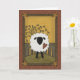 Baptism card with a wooly lamb on cover. Little prayer asking for blessings inside. Festive country greeting card with wooly Suffolk sheep. Black and white sheep with burnished gold heart. Gold stars. Decorative border. With a little help from my friends at www.scrappindoodles.com. From She Wolf Medicine.