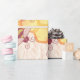 Sweet honeybee gift wrapping paper with a soft cream paper and honeycomb background.