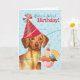 Happy birthday greetings with this cute design featuring a cute, party hat-wearing Vizsla with an ice cream sundae. Text can be easily changed; just click on customise button.