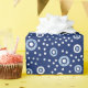 This cute blue baby shower gift wrap for either a girl or a boy features a cute geometric pattern with an ocean theme. A dark blue background features different sized circles in a fun water bubble like pattern. This wrapping paper is perfect for a boy baby shower or a child's birthday.