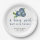 Cute baby shower invitation card featuring watercolor illustration of blueberries. The text says "a berry sweet baby is on the way." Matching items available.