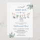 Boy Baby Shower Invitation Set. A Sweet Baby Boy Is On His Way Baby Shower Invite. Blue Boho Children's Clothing Outdoors Invite.