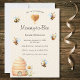 Introducing our delightful bumblebee-themed baby shower invitation, designed to add a touch of whimsy and joy to your special celebration! With a charming design featuring cute bumblebees buzzing around a hive, this invitation is sure to capture the hearts of your guests.
