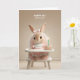 An adorable baby bunny dressed in a soft pink outfit sits in a high chair, celebrating her first birthday with a tiny cake and candle. Set against a warm neutral background, this charming design captures the innocence and sweetness of a baby’s very first milestone. A perfect card for celebrating a little girl’s first birthday with a soft, cozy, and heartfelt touch.