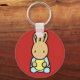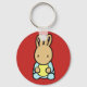 Basic keychain with front facing image of a sweet baby bunny. This adorable bunny is wearing blue footed-pyjamas with a light yellow bib. Other styles, sizes and colours available.
