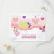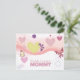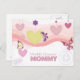 This Mother's Day post card has a soft pink wave at the top in the background with a white bottom. There are many different hearts hanging down with three butterflies flying around. World's Greatest Mummy is written at the bottom. The backside is blank for you to hand write in your message to mum at home.