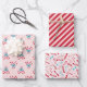 Set of 3 adorable Christmas candy themed patterns: Candy Canes with Bows and Snowflakes in pastel pink, red and blue; Christmas Candy in pastel pink, red and blue; as well as Candy Cane Stripes in pastel pink and red.