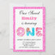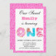 Sweet Candy Hot Pink Glitter First Birthday One Invitation