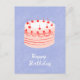 Celebrate special moments with this charming birthday postcard featuring a whimsical illustration of a classic layer cake adorned with cheerful red cherries. The delicate pink cake illustration is hand-drawn with decorative piping details, set against a soothing pastel blue background that adds a dreamy quality to the design. White cursive text warmly wishes "Happy Birthday" beneath the cake, creating a perfect balance of nostalgic charm and modern simplicity. This postcard captures the joy and sweetness of birthday celebrations with its retro-inspired bakery aesthetic and soft colour palette.