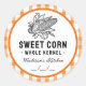 Editable homemade sweet corn sticker canning label. Make your own canning labels for your favourite homemade recipes. Perfect for preserves, homemade gifts or as kitchen pantry organiser.