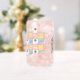 Satisfy your sweet tooth with this colourful pattern featuring tasty treats like a chocolate ice cream cone, a purple frosted chocolate doughnut, a lemon yellow macaron, and a pink and white swirled lollipop separated by chocolate chips and surrounded by rainbow sprinkles on four brightly hued squares. A slice of cake masks the repeating pattern to create a cute and fun image for your sugary cravings. This glassware is also available in rocks and stemless wineglass styles.