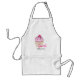 a personalized apron with an illustration of a delicious looking cupcake. Pink frosting and chocolate drizzles. A yellow cupcake holder and a raspberry on top. Yummy!