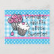 Adorable cupcake postcards will make the perfect gift for your favourite baker, cook or anyone who loves cupcakes. Blue and white polka dot and gingham background with a swirly frosted pink cupcake and a fun white cupcake with a a cherry on top. Text says CUPCAKES MAKE LIFE A LITTLE SWEETER! Make a gift set with our coordinated recipe cards or kitchen magnets. PinkInkArt original!