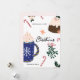 This pretty Christmas card features festive illustrations of beautiful holiday desserts and mistletoe on an elegant white background with a blush pink back of the card. Frosted cakes, whipped cocoa, and red and white candy canes make for a sweet holiday!