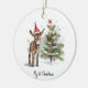 Adorn your tree with a cherished memory this holiday season with our "Sweet Donkey's First Christmas" Custom Ceramic Ornament! This beautifully crafted ornament features our adorable baby donkey in a Santa hat standing sweetly beside a festive, snow-dusted Christmas tree. The whimsical watercolor artwork is elegantly presented on durable ceramic, making it a timeless and heartwarming piece for your holiday decor.