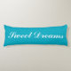 Sweet dreams Azure blue body pillow design. Personalized with custom text or name. Elegant script typography. Long shape bedroom cushion for sleeping and hugging.