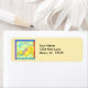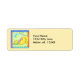 Sweet Dreams cat is doing what cats do best - napping. This address label coordinates with stationery, invitations and stamps. This kitty is wearing an adorable pink top with stars and aqua striped sleeves. The moon is hanging above Sweet Dreams kitty, watching over with a smile. Kitty also has a blissful smile so you know that he is having sweet dreams. Text of “Sweet Dreams” is on a lime green background sprinkled with yellow stars and pink dots all on a yellow background. The image is enclosed with a colorful whimsy border. Cat Nap cat is one of 10 cats from the fabric collection “Meow Meow” by Phyllis Dobbs.