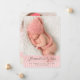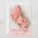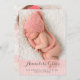 Thoroughly modern and simply elegant, this design is a perfect way to introduce your sweet little girl. Features lovely cursive typography and two large photos of your baby - one on the front and one on the back. The front also holds baby's birth information, and on the back a special text area to be personalised with parents and family info.