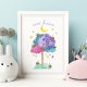 Drift off to dreamland with this charming and imaginative tree poster print, perfect for a nursery or kid's bedroom! This magical frameable art print features an original whimsical watercolor painting of a pink, purple, and blue tree covered in cute sleeping birds and shining stars hanging from its branches. The soft colours and calming scene are ideal for a nursery to help baby drift off to sleep. Download the print and print at home yourself so you can customise the size and framing however you'd like. With its soothing style, this poster adds a special handmade touch to any child's room. Inspire sweet dreams with this magical bedtime artwork!