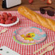 Bring charm and sweetness to your party with this adorable duckling on pink clouds plate!