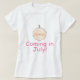 Share your baby news the fun way with an adorable Due In July maternity announcement t-shirt. Colourful baby face pregnancy design for the mum to be with a July baby on the way.