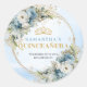 Sweet Dusty Blue Gold Greenery Quinceañera Party Classic Round Sticker