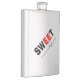 The product is a good size and came exactly as it was pictured.  The lid is not attached to the flask, which could be dangerous on drunken nights... The print came out surprisingly well and looks very sharp.  Would definitely recommend.
