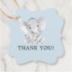 Cute elephant baby shower favour tag featuring a mum & baby elephant set on a blue background.