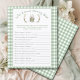Green gingham fairytale theme animal theme green & white background “Who Knows Mummy Best” paper sheet game. Just as sweet as can be for a baby shower.