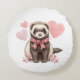Sweet Ferret Kawaii Pink Hearts Round Cushion