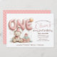 Sweet First Birthday Invitation with Teddy Bear and Balloons