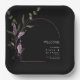 Delicate floral arrangements, subtle arch outlines, and modern sans serif fonts in a colour palette of lilac, mauve and soft sage green, combine with black and white backgrounds to give the pieces in this elegant wedding suite a moody, romantic ambience. The wedding paper plate design shown here provides a template to easily add your names and wedding date along with a personal welcome message. Search ID998 to see the complete collection.