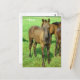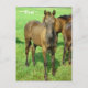 A sweet foal (baby horse) with furry forelock, displayed as a postcard. --- Photo is copyrighted by the photographer, Christina Spiegeland.
