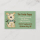 Cute dog themed business card made with a green on green pattern background, with graphics of a cartoon style tan and brown dog. Brown and cream coloured text is fully customisable. Personalise this fun card for your business.
