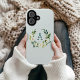 Custom monogrammed phone cases personalised with your initial or other text. This simple farmhouse inspired design features a watercolor wreath of greenery and white flowers on a mint polka dot background. Add your monogram letter in the botanical frame. Use the design tools to choose any background colour, change text fonts and colours or add your own photos to create a one of a kind case design.