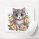 Sweet Grey Kitten with Flowers Kawaii Chibi Mouse Mat