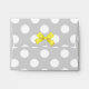 Stylish envelope done in a light grey and white polka dot pattern, with graphics of a little yellow bow, on the back flap. The inside has a sunny yellow and white polka dot pattern for a stylish contrast. Black return address, on the front, is ready to personalise to suit your needs. Lovely finishing touch to our matching Baby Shower Thank You note cards.