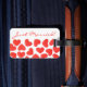 Cute design featuring gummy candy hearts with 'love' written on them in shades of red and pink on a white background. Luggage tag with a customisable design for you to personalise with your own text, pictures and ideas. Created using an original photograph and digital techniques by Jess Perry.