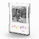 Artisan Watercolor Hearts in pink yellow red blue tones on white background with custom NAME in grey, custom PHOTO in black & white above. Clear Block. Easy to personalise text, text colour, font. Great for ANY Mothers Day, Grandparents, Parents, Kids as they grow, nursery, Godparent, Valentines Day, Wedding festivities or ANY special occasion at any time of year. Modern, Sweet, Full of Love. A Timeless Keepsake. Mix and match entire Sweet Hearts / Valentines Collections by TMCdesigns.