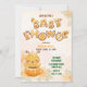A sweet and charming honey bee–themed baby shower invitation background featuring soft golden tones, delicate spring flowers, and a cute smiling bee illustration. This warm and joyful design is perfect for baby shower invitations, creating a lovely and welcoming atmosphere for celebrating a new arrival.