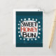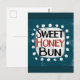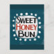 A cute typographic food design that says "Sweet Honey Bun". It's black and red text on a white rectangle with funky, playful white dots surrounding it, all on a teal background.
