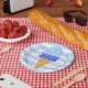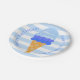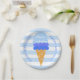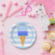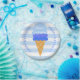 For a sweet ice cream themed 1st birthday party with a large blue ice cream cone on a background of white and pastel blue stripes. Personalise and add the name of the child and age. The text: Happy Birthday!