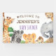 Welcome friends, family, and neighbours as you celebrate your baby shower with this adorable jungle safari wild one baby shower welcome banner. This jungle safari welcome banner features a sweet array of African safari animals: a giraffe, lion, and zebra, emu, and cheetah. You can personalise this baby shower welcome sign with your name and the font and colour of the text is customisable.