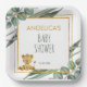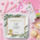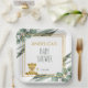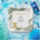 These sweet jungle safari baby shower paper plates make the perfect addition for friends and family at your baby boy or baby girl's baby shower. Use these cute jungle safari paper plates as a gender neutral design. These lion paper plates feature an adorable baby lion sitting on a double gold square frame that is decorated with eucalyptus botanical greenery. Personalise with your name and the date of your event.