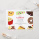 This sweet invitation contains delectable kawaii desserts including brownies, doughnuts, cakes, cookies and cupcakes! A popping bright red font makes the design stand out. Perfect for children's birthdays all year round.