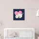 A poster with an adorable graphic illustration. A white kitty cat with a cute paw print image on her fur. Sleeping peacefully. A big pink heart behind her and some little stars too. Dark blue background.