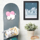 Vinyl decal with an adorable graphic illustration. A white kitty cat with a cute paw print image on her fur. Sleeping peacefully. A big pink heart behind her and some little stars too.