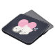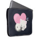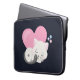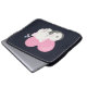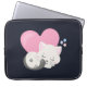 Laptop sleeve with an adorable graphic illustration. A white kitty cat with a cute paw print image on her fur. Sleeping peacefully. A big pink heart behind her and some little stars too. Dark blue background.